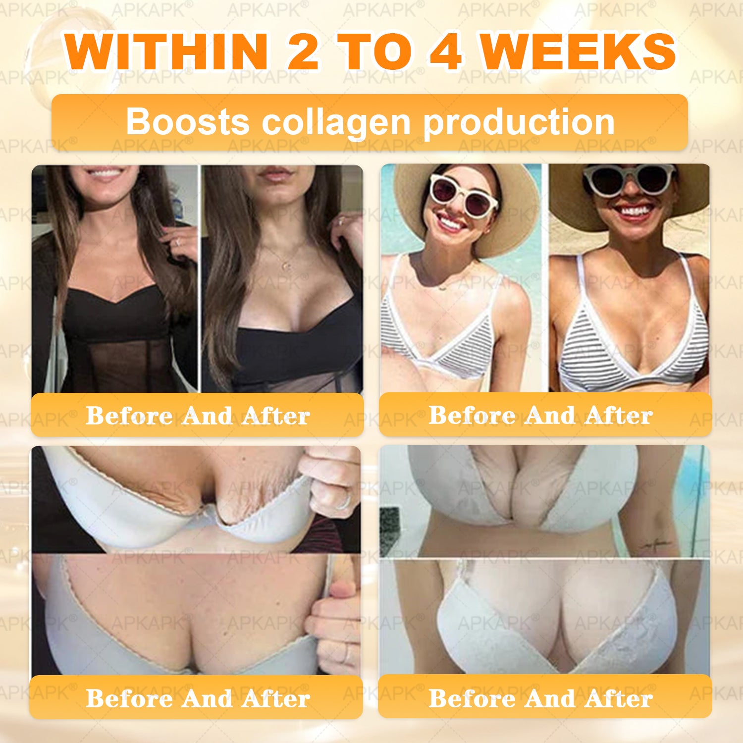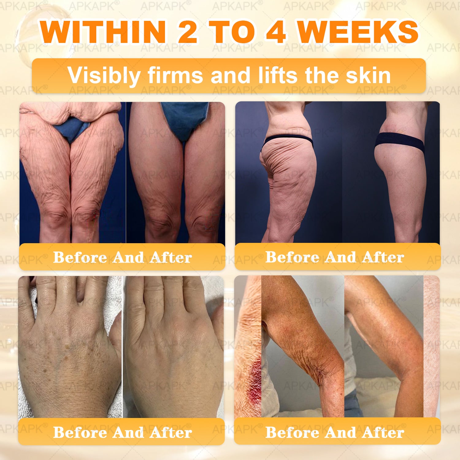 As we age, our skin naturally loses collagen, causing areas like the chest and buttocks to become less firm and elastic. Collagen peptides work deep within the skin to rebuild the collagen network and restore strength and bounce. Bee venom peptides help stimulate new collagen, while hyaluronic acid and grass-fed tallow (rich in stearic acid) deeply moisturize and nourish the skin. Shea butter and jojoba oil boost smoothness, plumpness, and elasticity, leaving the skin feeling firmer and more toned.ย With regular use, 95% of users noticed a visible lift and reduction in sagging around the chest and buttocks. It also helps tighten loose skin after weight loss or childbirth and fades fine lines on the face and neck, revealing a firmer, younger-looking appearance.