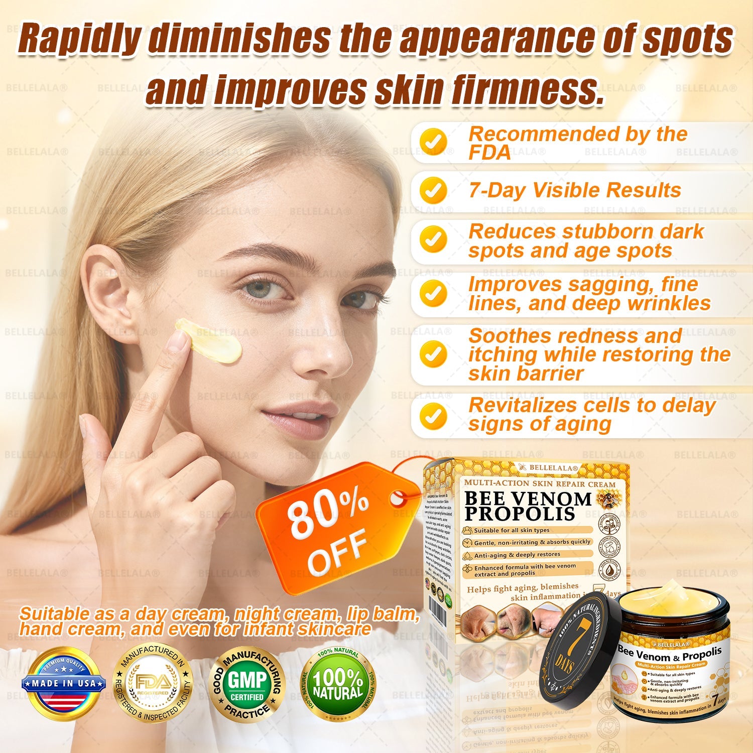 โAs a dermatology specialist, my mission has always been to create safe, natural, and effective skin repair solutions. Backed by the International Association of Dermatology, our study of over 5,000 participants confirmed the efficacy of ๐๐๐๐๐๐๐๐๐ยฎ Bee Venom & Propolis Multi-Action Skin Repair Cream in reducing inflammation and itching, fading warts and dark spots, and improving firmness and elasticity.