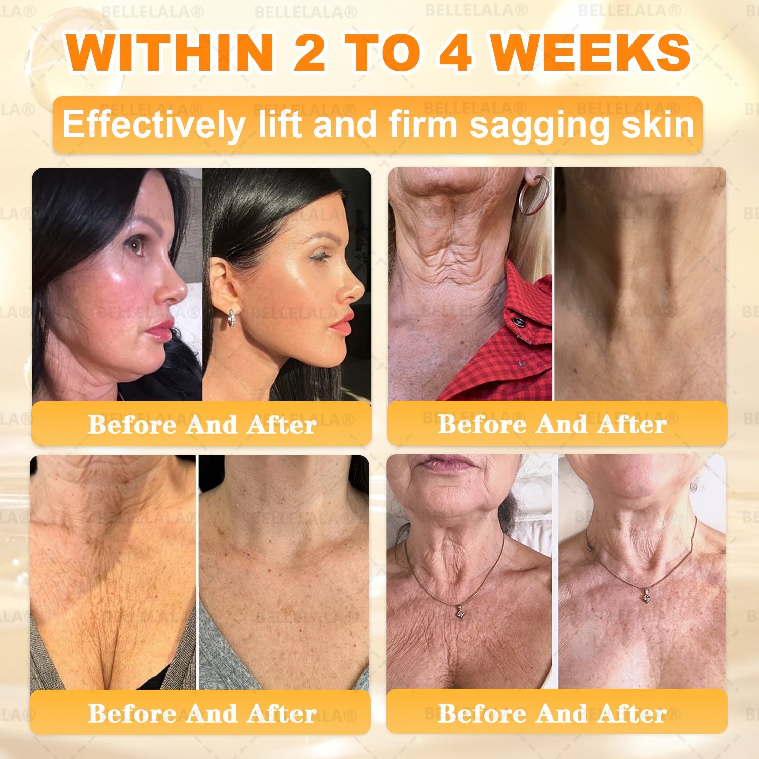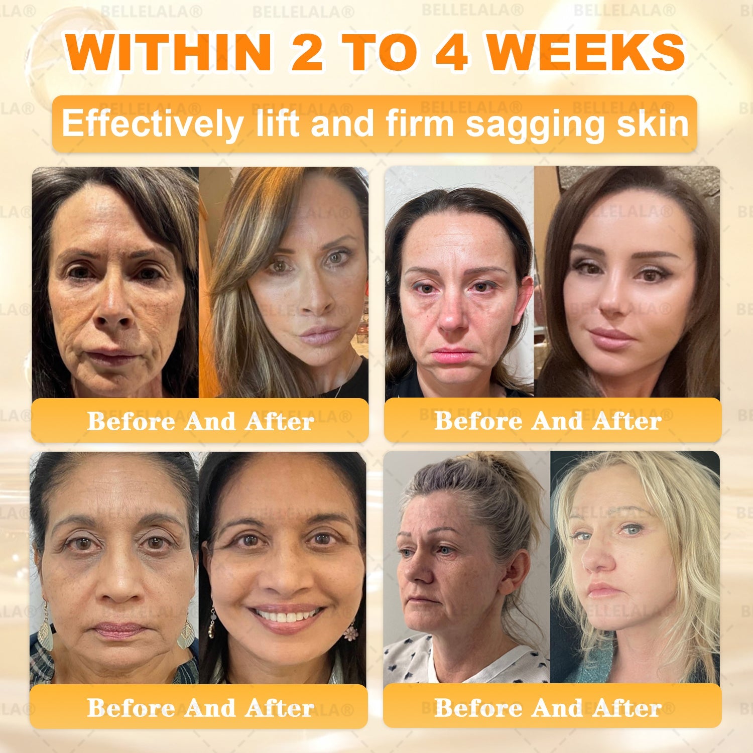 As we age, our skin naturally loses collagen, causing areas like the chest and buttocks to become less firm and elastic. Collagen peptides rebuild the skinโs structure, while bee venom peptides stimulate new collagen formation. Hyaluronic acid provides deep hydration and grass-fed tallow nourishes and restores suppleness. With regular use, 95% of users noticed a visible lift and reduced sagging around the chest and buttocks. It also tightens loose skin after weight loss or childbirth and smooths fine lines for a firmer, younger look.